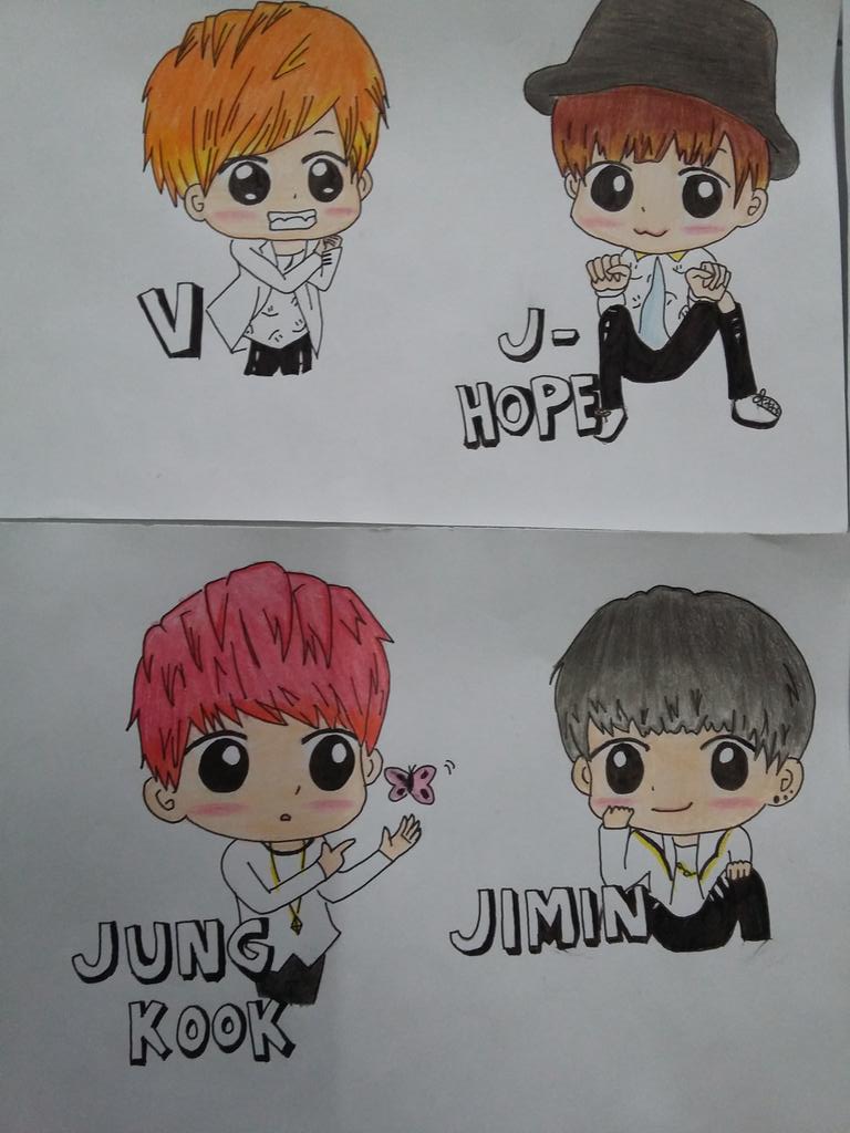 Terbaru 22+ BTS Cartoon Drawing. The word anime drawing is a truncation of the word animation. In Japan, the word is utilized to allude to all movement. In any case, outside of Japan, it has turned into the catch-all term for anime drawing from Japan. Terbaru 22+ BTS Cartoon Drawing the following